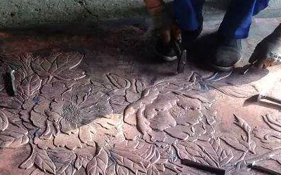 鍛造(咱們這兒特指鍛銅)——嘿!這可是體力活加技術(shù)活!拿銅板當(dāng)畫布,錘子當(dāng)畫筆,全靠師傅一錘子一錘子敲打出來的!尤其是浮雕、壁畫這類講究深淺效果的,這手藝絕了!純手工的精細活兒。